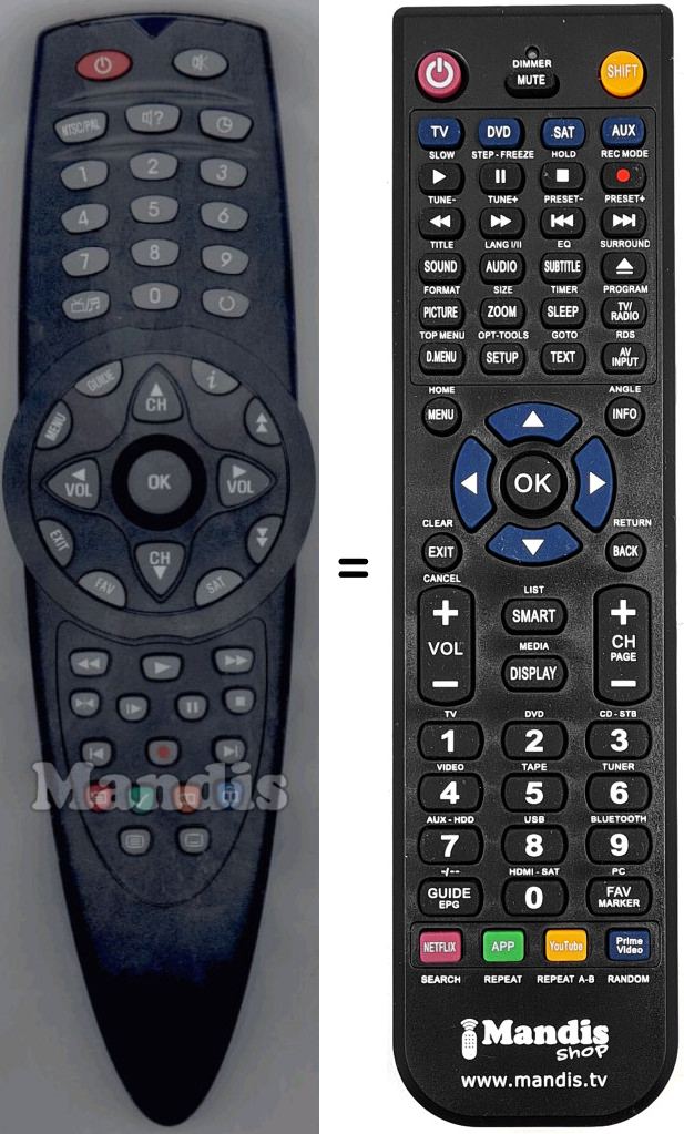 Es handelt sich jedoch nicht um eine Universalfernbedienung sondern um eine Fernbedienung die das Original ersetzt.