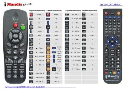 Home > Marken > Fernbedienungen Optoma > Fernbedienung für OPTOMA ES520