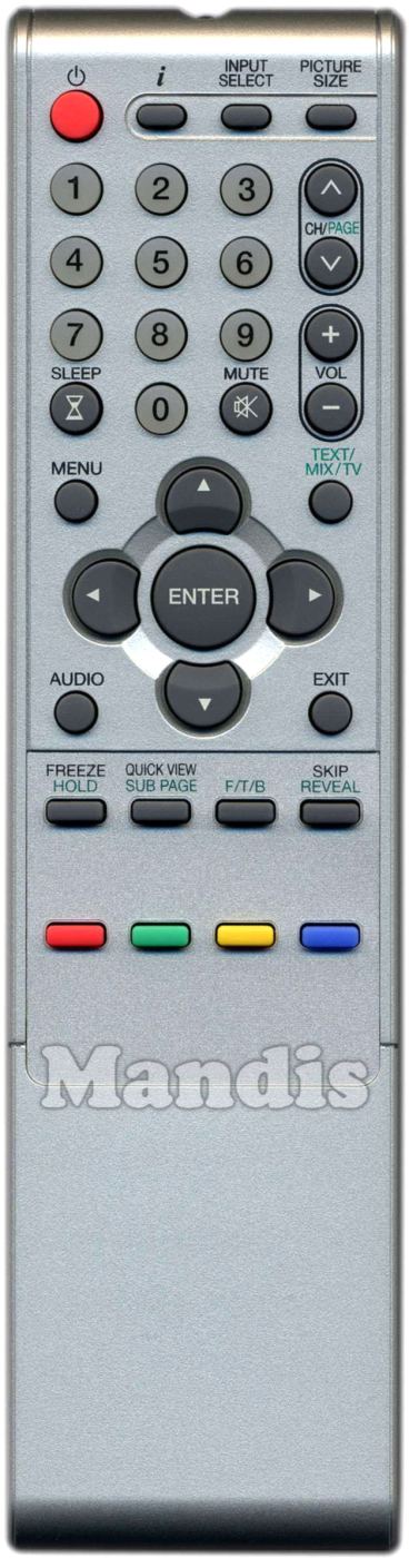 Power, Info, Input Select, Picture Size, 1, 2, 3, 4, 5, 6, 7, 8, 9, 0, Ch + / Page +, Ch - / Page -, Vol +, Vol -, Sleep, Mute, Menu, Text / Mix / TV, Up, Right, Down, Left, Enter, Audio, Exit, Freeze / Hold, Quick View / Sub Page, F / T / B, Skip / Reveal, Red, Green, Yellow, Blue