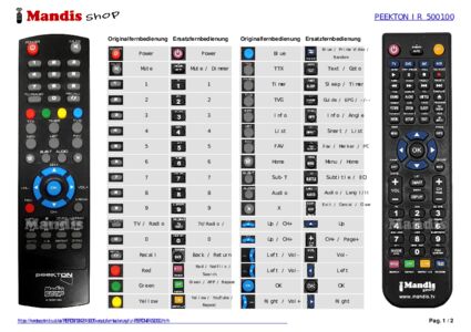 Diese Fernbedienung ersetzt Ihre digital PK1870 in vollem Umfang und bietet alle Funktionen des Originals.