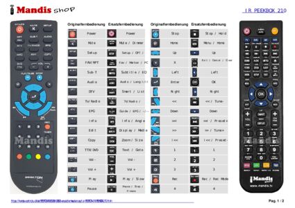 Diese Fernbedienung ersetzt Ihre IR PEEKBOX 210 in vollem Umfang und bietet alle Funktionen des Originals.