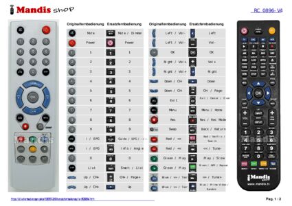 Ein Dokument ist enthalten, um die Verwendung der neuen Fernbedienung zu erleichtern, indem es die Tastenbelegung zeigt.
