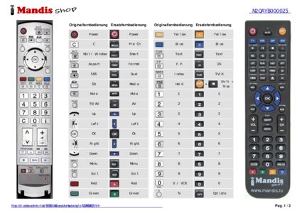 Ein Dokument ist enthalten, um die Verwendung der neuen Fernbedienung zu erleichtern, indem es die Tastenbelegung zeigt.