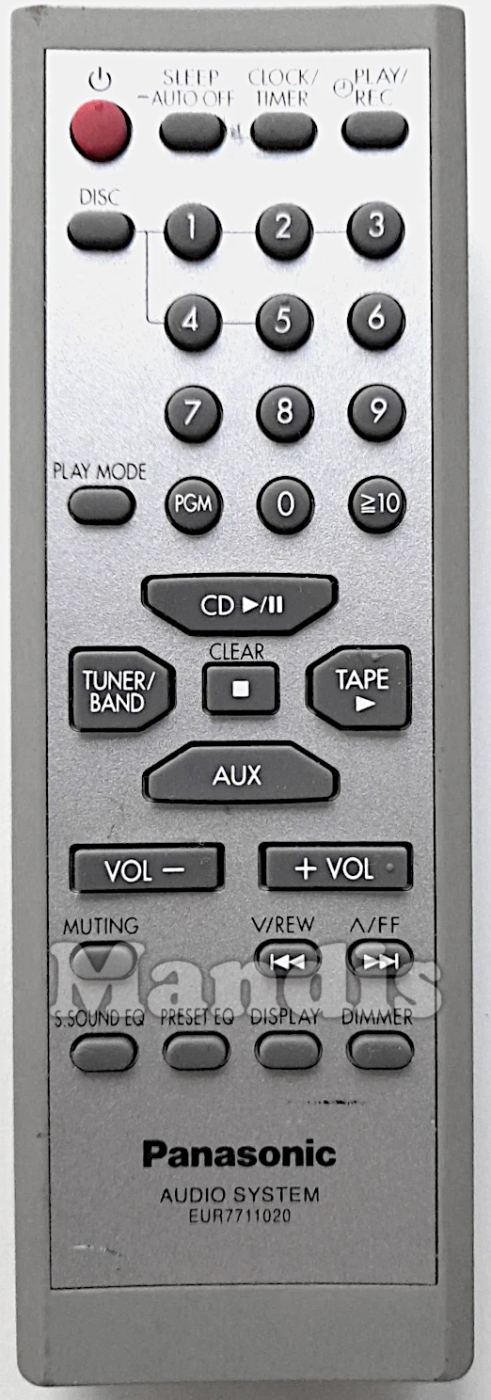 Fernbedienung Original EUR7711020 zur Steuerung der Hi-Fi-Anlage der Marke Panasonic. Es handelt sich um eine Originalfernbedienung.