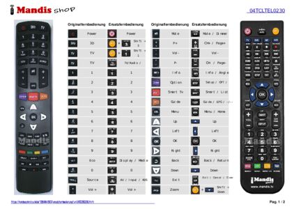 Ein Dokument ist enthalten, um die Verwendung der neuen Fernbedienung zu erleichtern, indem es die Tastenbelegung zeigt.