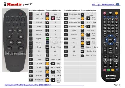 Ein Dokument ist enthalten, um die Verwendung der neuen Fernbedienung zu erleichtern, indem es die Tastenbelegung zeigt.
