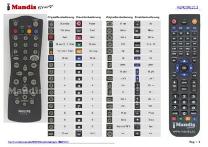 Ein Dokument ist enthalten, um die Verwendung der neuen Fernbedienung zu erleichtern, indem es die Tastenbelegung zeigt.