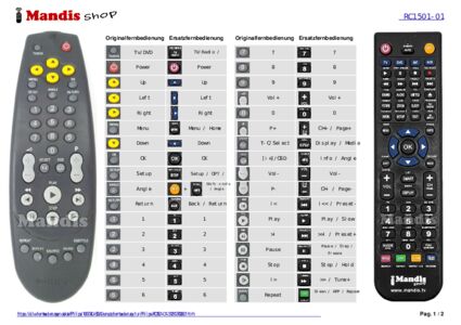 Ein Dokument ist enthalten, um die Verwendung der neuen Fernbedienung zu erleichtern, indem es die Tastenbelegung zeigt.