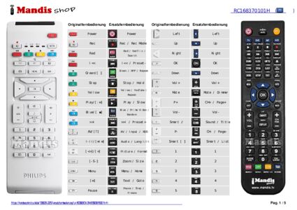 Ein Dokument ist enthalten, um die Verwendung der neuen Fernbedienung zu erleichtern, indem es die Tastenbelegung zeigt.