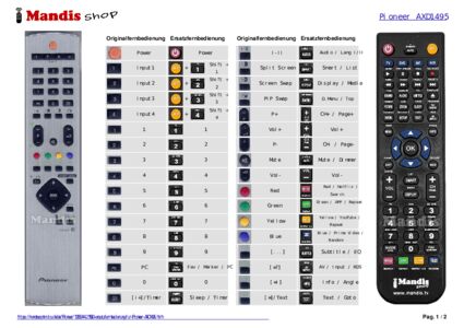 Diese Fernbedienung ersetzt Ihre AXD1494 in vollem Umfang und bietet alle Funktionen des Originals.