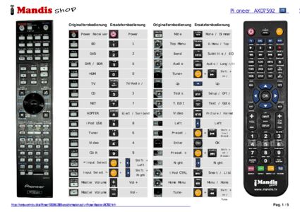 Diese Fernbedienung ersetzt Ihre Receiver (AXD7592) in vollem Umfang und bietet alle Funktionen des Originals.