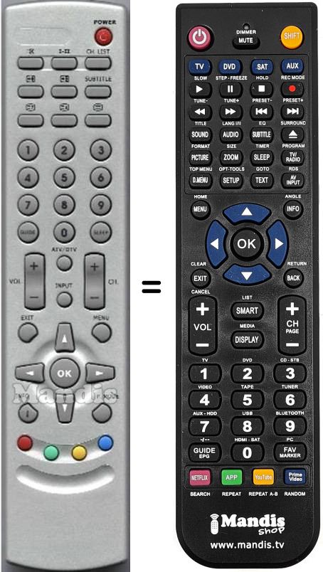 Es handelt sich jedoch nicht um eine Universalfernbedienung sondern um eine Fernbedienung die das Original ersetzt.