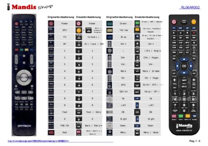 Ein Dokument ist enthalten, um die Verwendung der neuen Fernbedienung zu erleichtern, indem es die Tastenbelegung zeigt.
