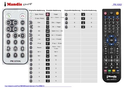 Diese Fernbedienung ersetzt Ihre PRIX002 in vollem Umfang und bietet alle Funktionen des Originals.