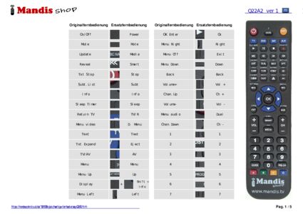 Ein Dokument ist enthalten, um die Verwendung der neuen Fernbedienung zu erleichtern, indem es die Tastenbelegung zeigt.