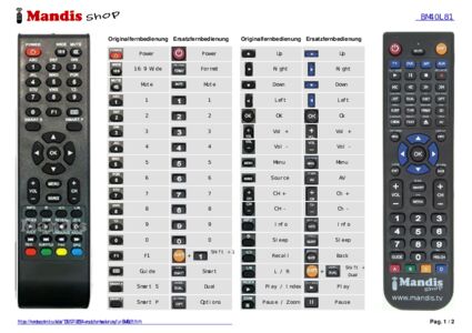 Ein Dokument ist enthalten, um die Verwendung der neuen Fernbedienung zu erleichtern, indem es die Tastenbelegung zeigt.