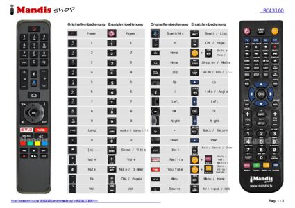 Ein Dokument ist enthalten, um die Verwendung der neuen Fernbedienung zu erleichtern, indem es die Tastenbelegung zeigt.