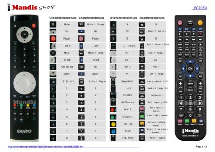 Ein Dokument ist enthalten, um die Verwendung der neuen Fernbedienung zu erleichtern, indem es die Tastenbelegung zeigt.