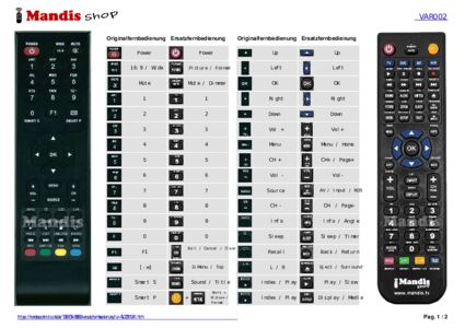 Ein Dokument ist enthalten, um die Verwendung der neuen Fernbedienung zu erleichtern, indem es die Tastenbelegung zeigt.