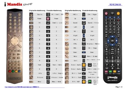 Ein Dokument ist enthalten, um die Verwendung der neuen Fernbedienung zu erleichtern, indem es die Tastenbelegung zeigt.