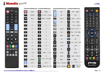 Ein Dokument ist enthalten, um die Verwendung der neuen Fernbedienung zu erleichtern, indem es die Tastenbelegung zeigt.