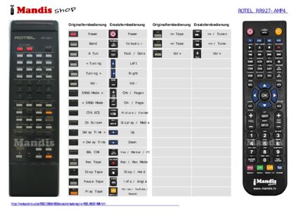 Diese Fernbedienung ersetzt die meisten Funktionen Ihres RR927-AMP4. Es ist keine Universalfernbedienung, sondern eine Kopie mit den meisten Tasten und Funktionen Ihres Originals.