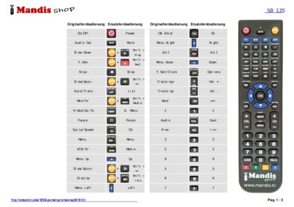 Ein Dokument ist enthalten, um die Verwendung der neuen Fernbedienung zu erleichtern, indem es die Tastenbelegung zeigt.