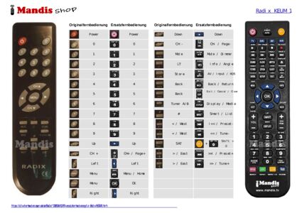 Ein Dokument ist enthalten, um die Verwendung der neuen Fernbedienung zu erleichtern, indem es die Tastenbelegung zeigt.