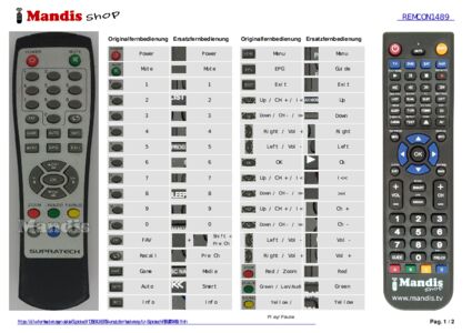 Ein Dokument ist enthalten, um die Verwendung der neuen Fernbedienung zu erleichtern, indem es die Tastenbelegung zeigt.