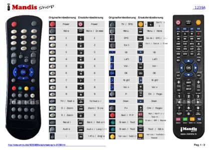 Ein Dokument ist enthalten, um die Verwendung der neuen Fernbedienung zu erleichtern, indem es die Tastenbelegung zeigt.