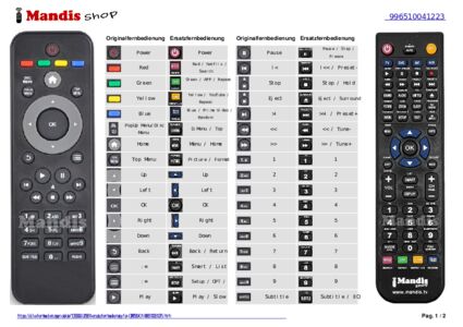 Ein Dokument ist enthalten, um die Verwendung der neuen Fernbedienung zu erleichtern, indem es die Tastenbelegung zeigt.