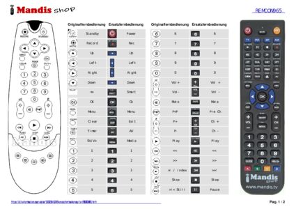 Ein Dokument ist enthalten, um die Verwendung der neuen Fernbedienung zu erleichtern, indem es die Tastenbelegung zeigt.