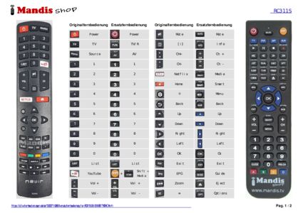 Ein Dokument ist enthalten, um die Verwendung der neuen Fernbedienung zu erleichtern, indem es die Tastenbelegung zeigt.