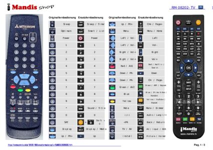 Ein Dokument ist enthalten, um die Verwendung der neuen Fernbedienung zu erleichtern, indem es die Tastenbelegung zeigt.