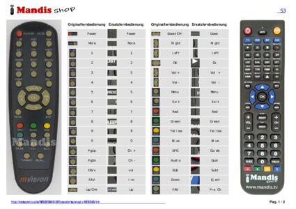 Ein Dokument ist enthalten, um die Verwendung der neuen Fernbedienung zu erleichtern, indem es die Tastenbelegung zeigt.