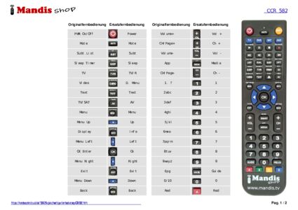 Diese Fernbedienung ersetzt Ihre CCR 582 in vollem Umfang und bietet alle Funktionen des Originals.