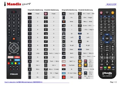 Ein Dokument ist enthalten, um die Verwendung der neuen Fernbedienung zu erleichtern, indem es die Tastenbelegung zeigt.