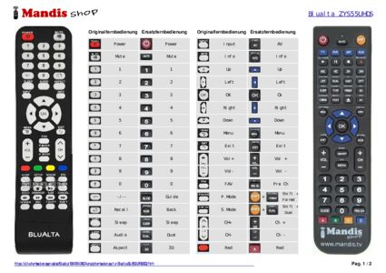 Ein Dokument ist enthalten, um die Verwendung der neuen Fernbedienung zu erleichtern, indem es die Tastenbelegung zeigt.