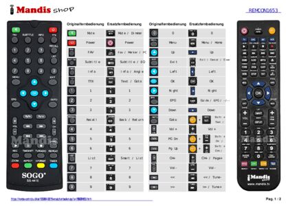 Ein Dokument ist enthalten, um die Verwendung der neuen Fernbedienung zu erleichtern, indem es die Tastenbelegung zeigt.