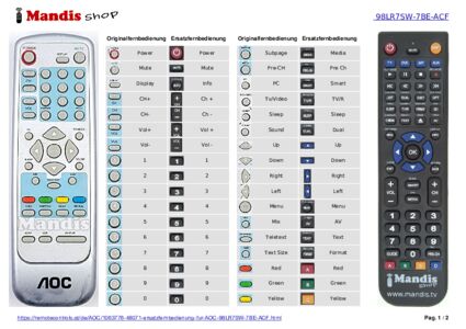 Ein Dokument ist enthalten, um die Verwendung der neuen Fernbedienung zu erleichtern, indem es die Tastenbelegung zeigt.