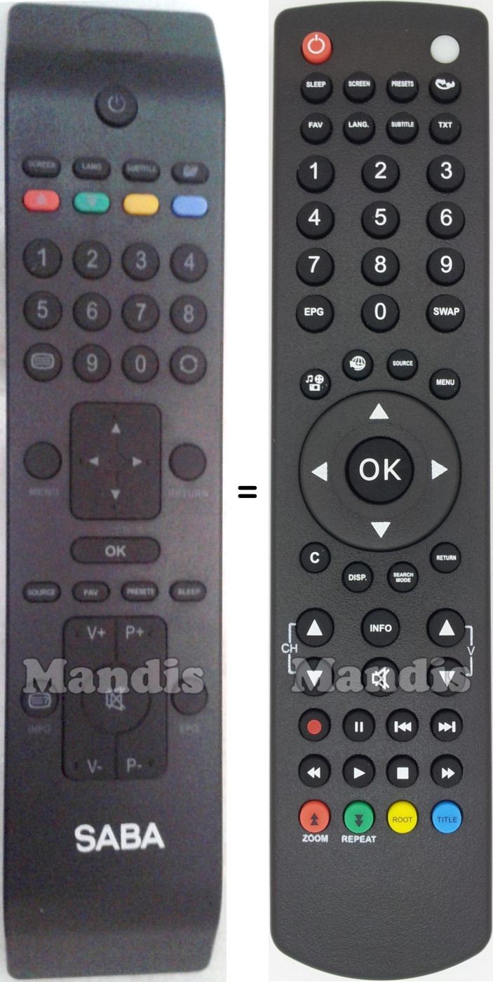Gleichwertige Fernbedienungen, die über alle Funktionen der Fernbedienung SABA RC 1910 (30070046) verfügen: