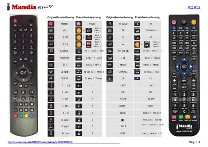 Im Folgenden zeigen wir Ihnen die Zuordnung jedes einzelnen Knopfes der Originalfernbedienung zu der Taste, die dieselbe Funktion auf der Ersatzfernbedienung ausführt. In einigen Fällen müssen Sie möglicherweise die UMSCHALT-Taste drücken, bevor Sie eine andere Taste drücken, um bestimmte Aktionen auszuführen. Diese zusätzlichen Funktionen werden oft wenig genutzt und dienen dazu, das Verständnis der Ersatzfernbedienung zu erleichtern oder weil die Originalfernbedienung mehr Tasten hat als das entsprechende Modell.