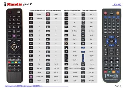Ein Dokument ist enthalten, um die Verwendung der neuen Fernbedienung zu erleichtern, indem es die Tastenbelegung zeigt.