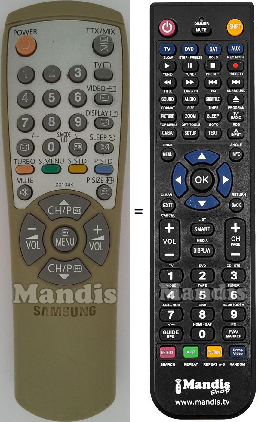 Diese Fernbedienung ersetzt Ihre TM59 (AA5900104K) in vollem Umfang und bietet alle Funktionen des Originals.