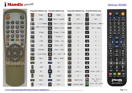 Ein Dokument ist enthalten, um die Verwendung der neuen Fernbedienung zu erleichtern, indem es die Tastenbelegung zeigt.