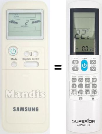 Home > Marken Klimaanlagen > Übersicht der Fernbedienungen für Klimaanlagen der Marke Samsung > Universalfernbedienung SAMSUNG Aircoplus (42530)