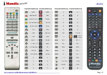 Ein Dokument ist enthalten, um die Verwendung der neuen Fernbedienung zu erleichtern, indem es die Tastenbelegung zeigt.
