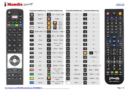 Ein Dokument ist enthalten, um die Verwendung der neuen Fernbedienung zu erleichtern, indem es die Tastenbelegung zeigt.