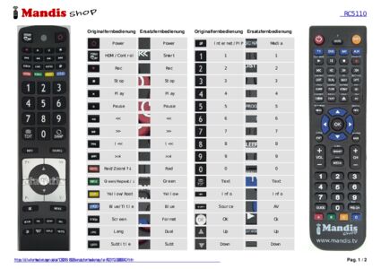 Ein Dokument ist enthalten, um die Verwendung der neuen Fernbedienung zu erleichtern, indem es die Tastenbelegung zeigt.