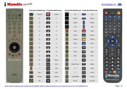 Diese Fernbedienung ersetzt Ihre CONTROL 150 TV in vollem Umfang und bietet alle Funktionen des Originals.